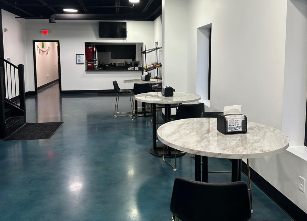 Take a break in our stylish lounge areas designed for relaxation and socializing. Connect with fellow athletes, review routines, or simply unwind after an intense practice session. Perfect for parent viewing, birthday parties, and more!